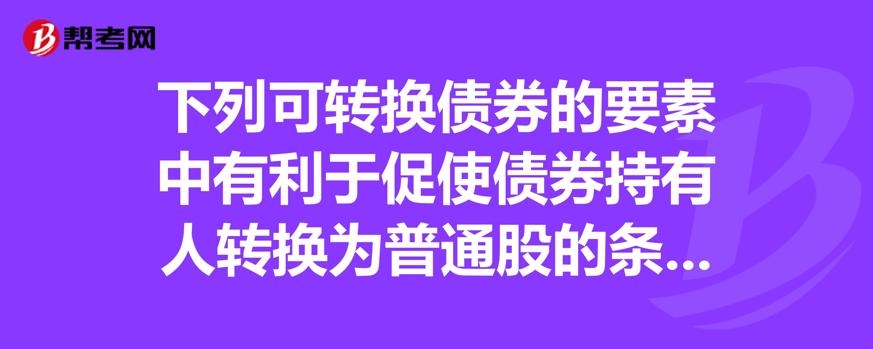 可转换债券的主要条款有哪些?:可转换债券的主要条款:转换价格是指可转换债券转换为每股普通股份所支付的价格。转换比例是指一定面额可转换债券可转换成普通股票的股数。转换期限:可转换证券的转换期限可以与债券的期限相同。发行人都规定某一具体期限,在有效期内允许可转换债券持有者按转换比例或转换价格转换成发行人的普通股票。促使债券持有人转换股份,可以使发行公司避免市场利率下降后,继续向债券持有人支付较高的债券票面利率所蒙受的损失。