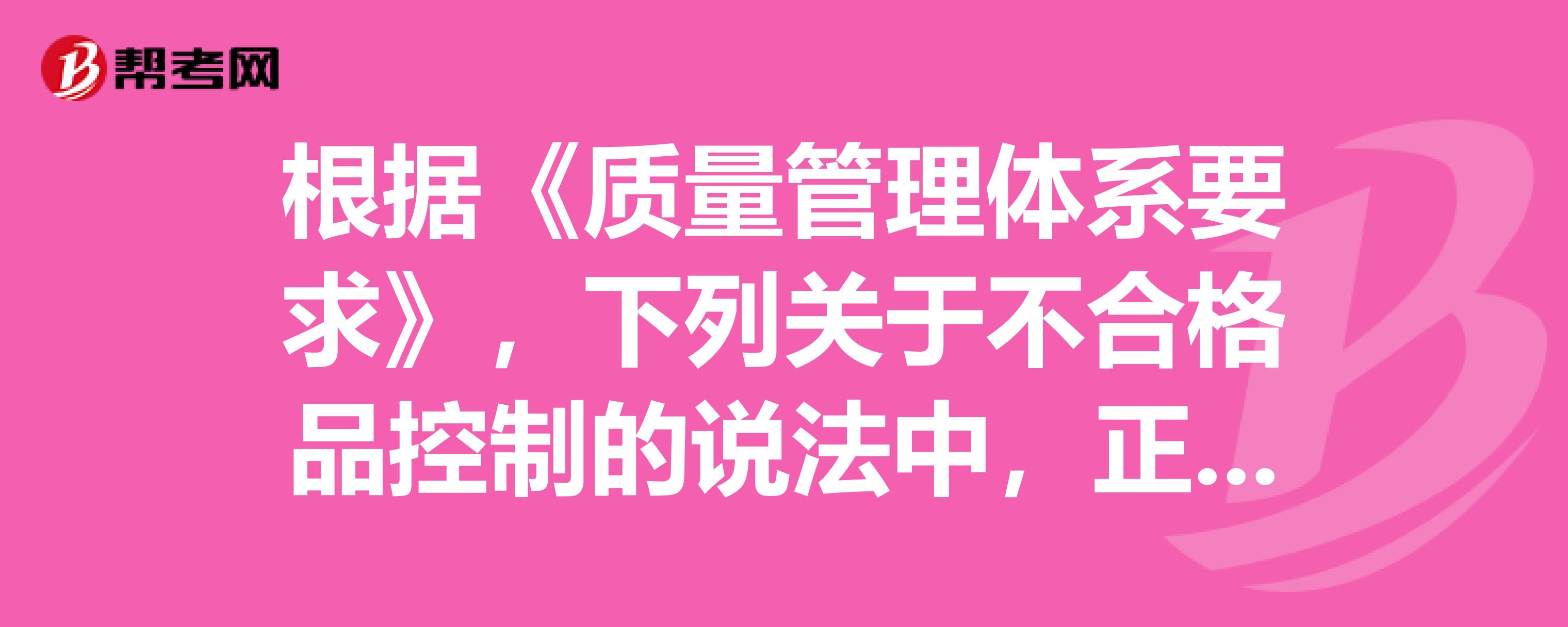 根据《质量管理体系要求》,下列关于不合格品控制的说法中,正确的是()。