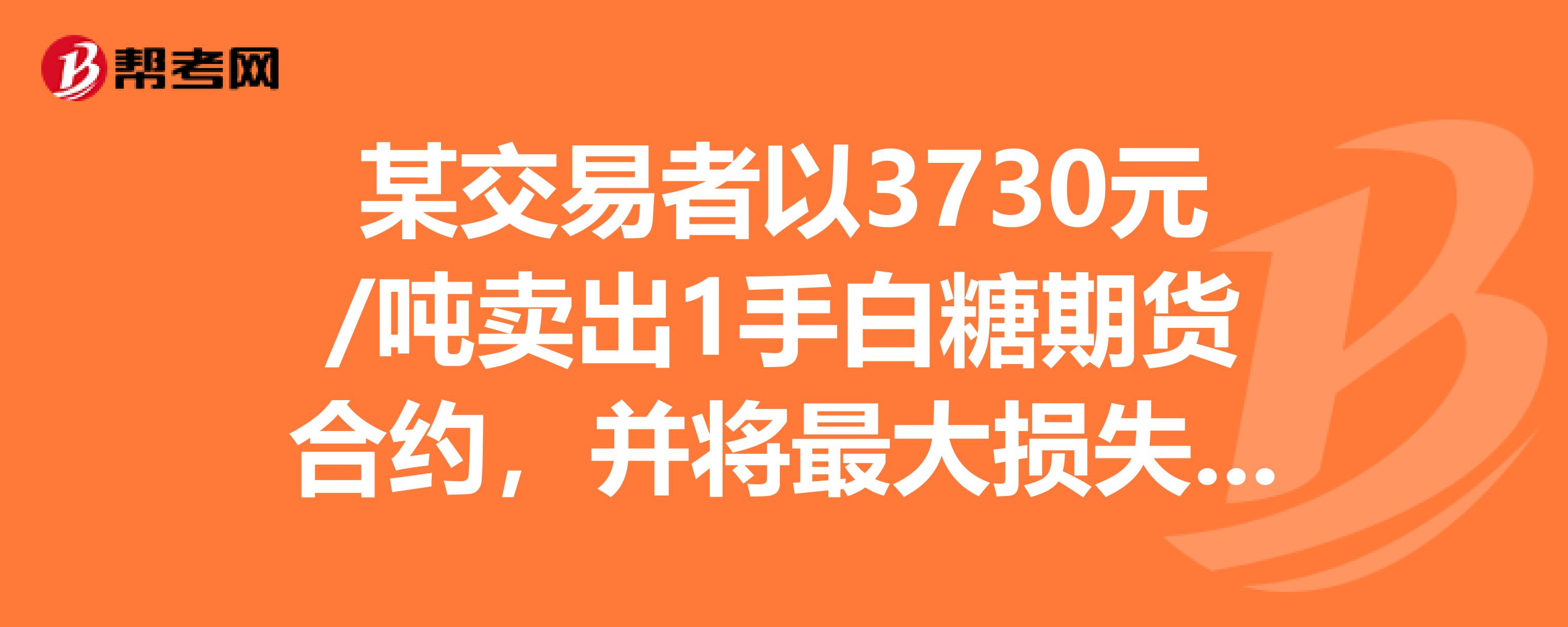 某交易者以3730元/吨卖出1手白糖期货合约,并将最大损失额限制为20元/吨,因此在上述交易成交后下达了止损指令,设定的价格为()元/吨。(不考虑手续费)求助求助大侠