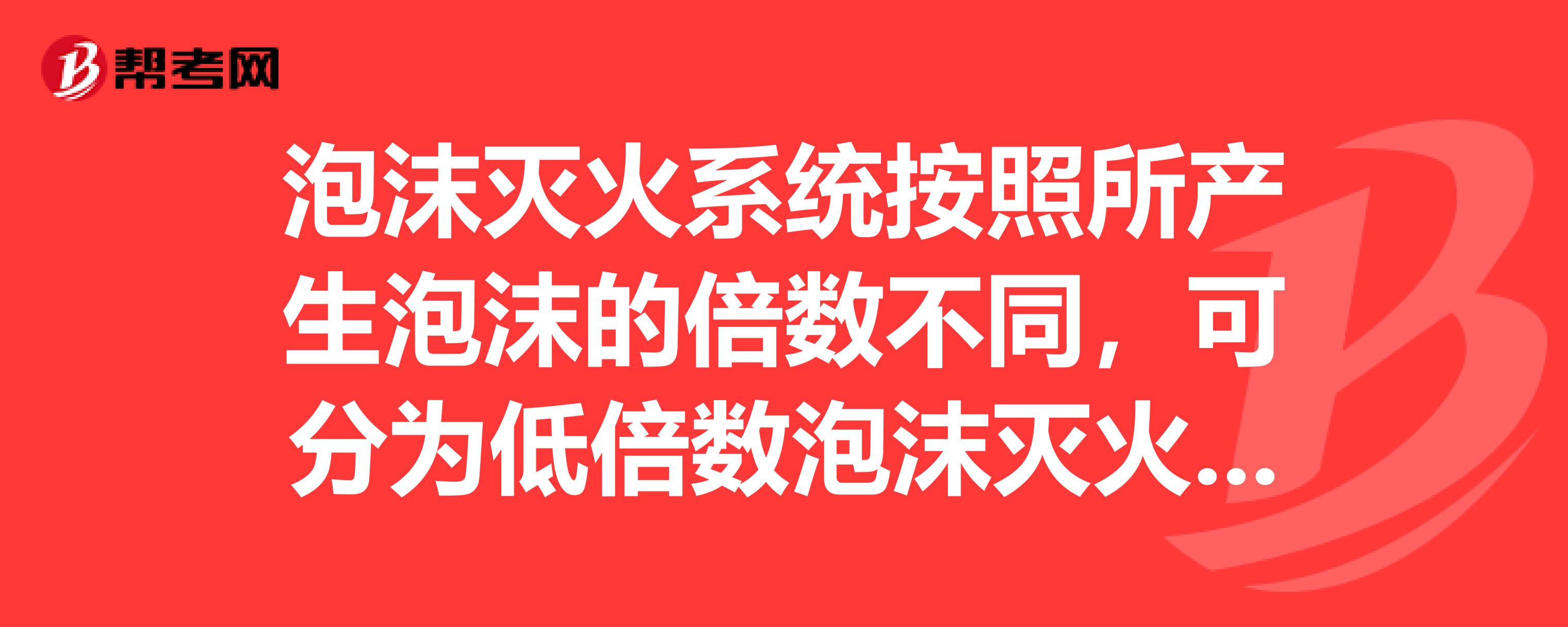 泡沫灭火系统按发泡倍数划分为哪几类?:泡沫灭火系统按发泡倍数划分为哪几类?基于泡沫灭火系统的保护对象(储存或生产使用的甲、乙、丙类液体)的特性或储罐形式的特殊要求,泡沫灭火系统按发泡倍数划分为低倍数泡沫灭火系统、中倍数泡沫灭火系统、高倍数泡沫灭火系统。1.低倍数泡沫灭火系统。低倍数泡沫灭火系统是指发泡倍数小于20的泡沫灭火系统。中倍数泡沫灭火系统是指发泡倍数为20~200的泡沫灭火系统。3.高倍数泡沫灭火系统。