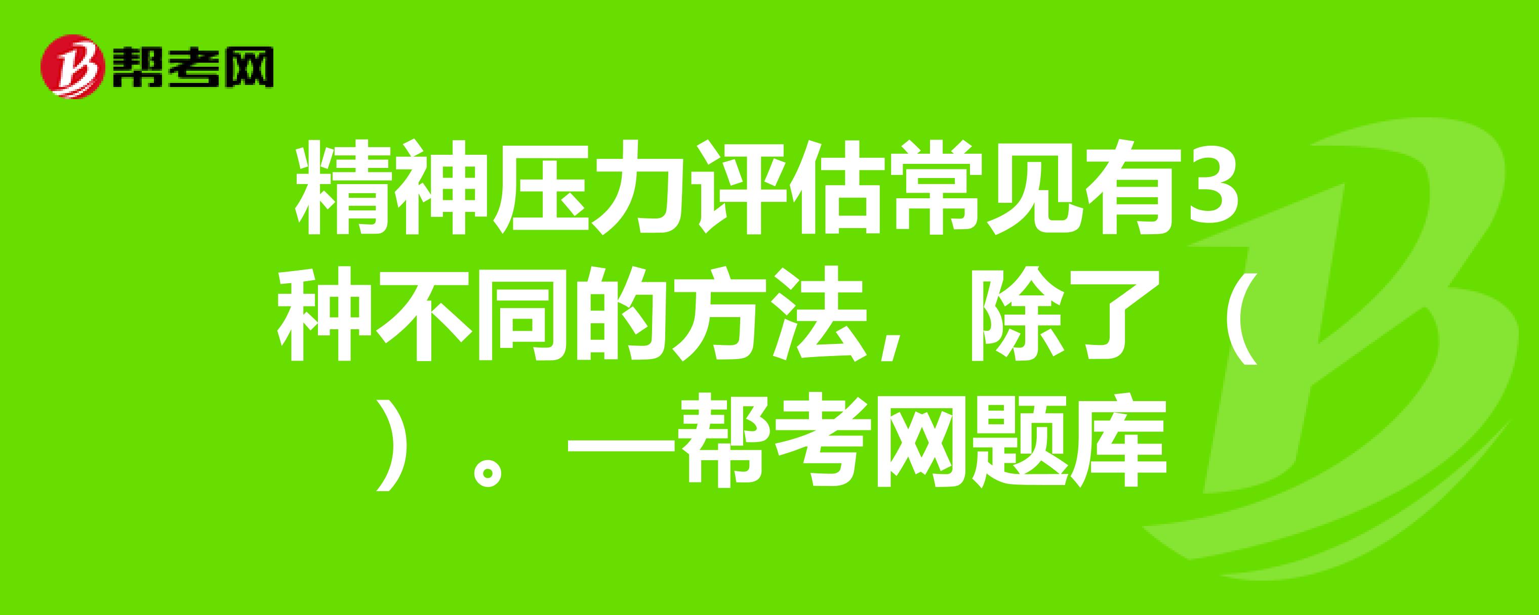 精神压力评估常见有3种不同的方法,除了什么。请帮忙回答,谢谢