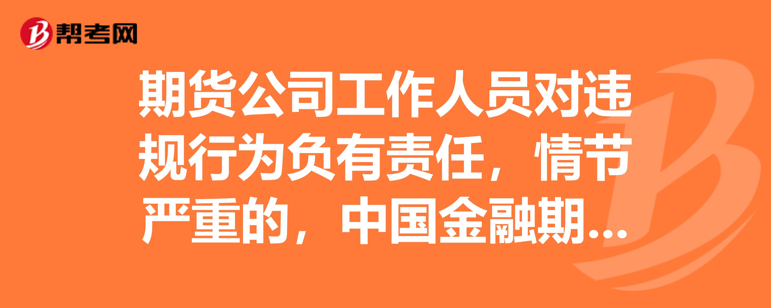 期货公司从业人员对投资者的责任有哪些?:期货从业人员对投资者的责任如下:应当了解投资者的财务状况、投资经验及投资目标,并应谨慎、诚实、客观地告知投资者期货投资的特点以及在期货投资中可能出现的各种风险,第二十一条从业人员应当如实向投资者申明其所具有的执业能力,从业人员应当保护投资者的合法利益,第二十二条从业人员在向投资者提供服务时应当公平地对待投资者。(一)从业人员应当严格按照有关期货业务规则规定办理相关期货业务;
