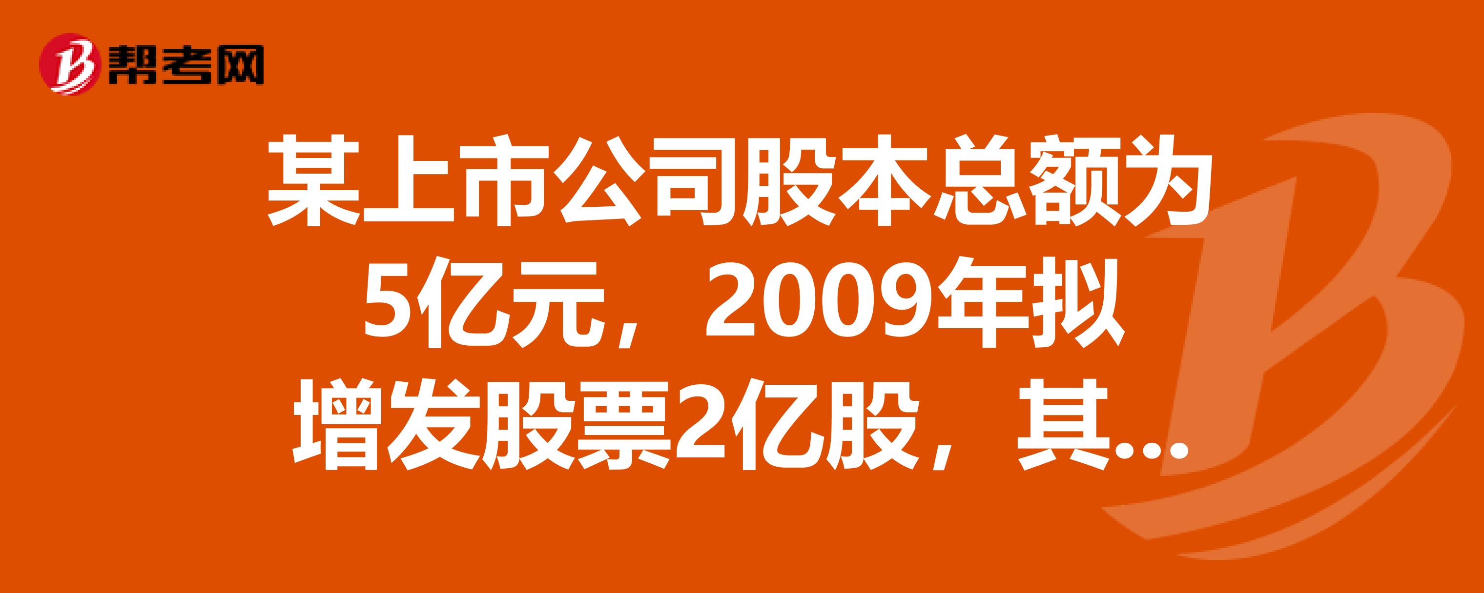 某上市公司股本总额为5亿元,2009年拟增发股票2亿股,其中一部分采用配售的方式发售,那么该配售股份数量最多不应超过什么?谢谢