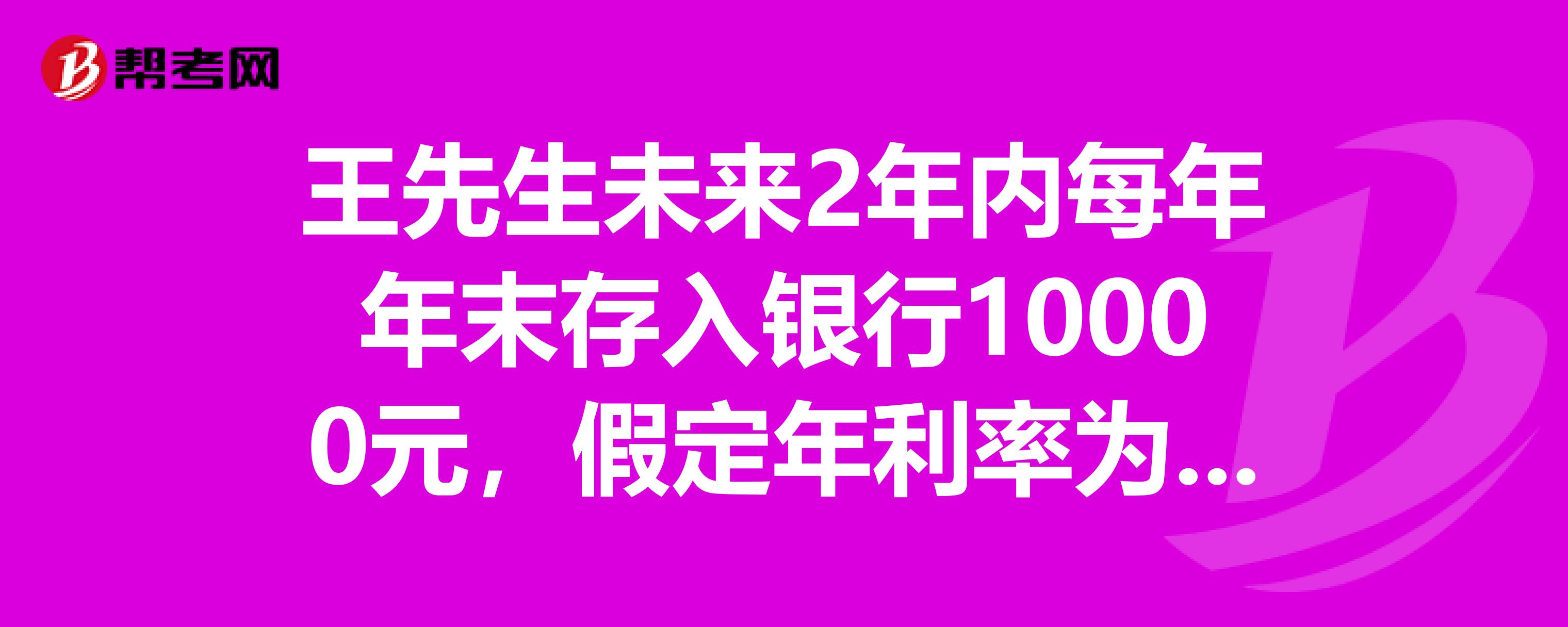 王先生未来2年内每年年末存入银行10000元,假定年利率为10%,每年付息一次,则该笔投资2年后的本利和是()元(不考虑利息税)。在线求助