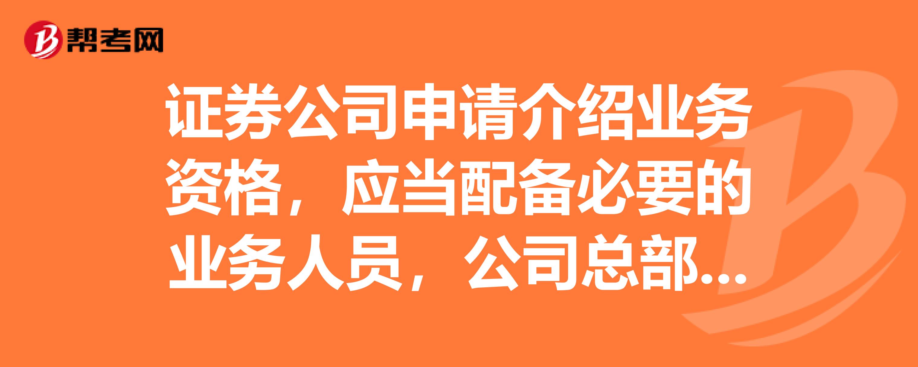 证券公司为期货公司提供中间介绍业务试行办法什么时候开始施行?:证券公司为期货公司提供中间介绍业务试行办法什么时候开始施行?证券公司申请介绍业务资格,拟开展介绍业务的营业部至少有2名具有期货从业人员资格的业务人员:【例题·单选题】证券公司为期货公司从事中间介绍业务的;【解析】《证券公司为期货公司提供中间介绍业务试行办法》第九条规定,证券公司受期货公司委托从事介绍业务。证券公司不得代理客户进行期货交易。证券公司及其营业部可以协助期货公司向客户提示风险
