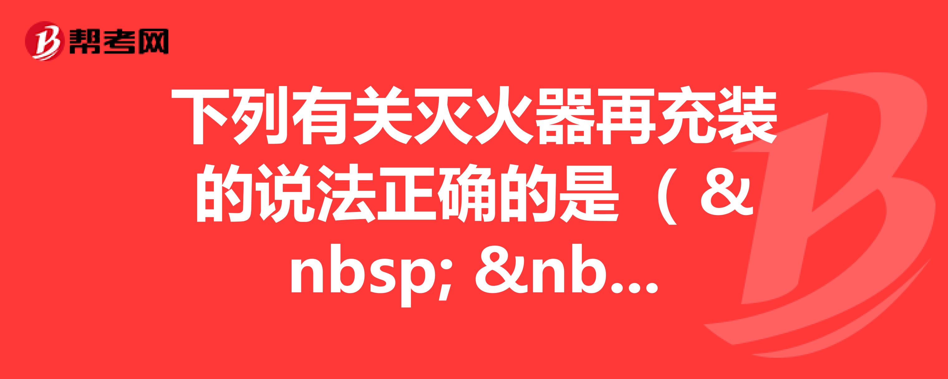 B、二氧化碳灭火器再充装时,不得采用加热法也不得以压力水为驱动力将二氧化碳灭火剂从储存气瓶中充装到灭火器内