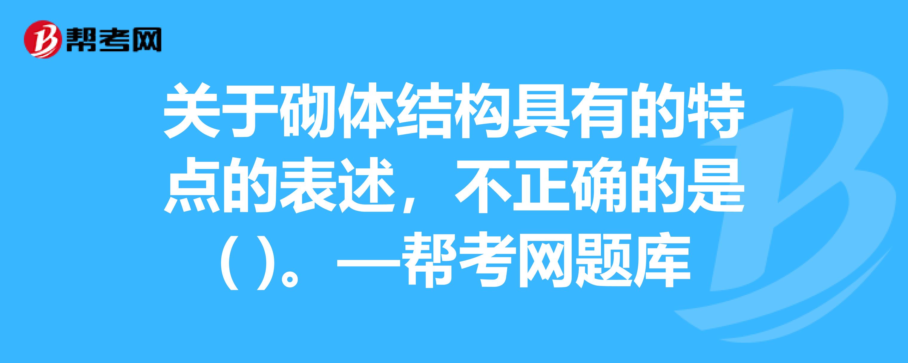 砖砌体工程的砌筑用砖有哪些要求?:砖砌体工程包括烧结普通砖、烧结多孔砖、混凝土多孔砖、混凝士实心砖、蒸压灰砂砖蒸压粉煤灰砖等砌体工程。砌筑用砖应符合以下要求:(1)烧结普通砖根据尺寸偏差、外观质量、泛霜和石灰爆裂的程度分为优等品、一等品、合格品三个质量等级。一等品、合格品可用于混水墙。(2)烧结普通砖的外形为直角六面体,(3)混凝土砖、蒸压砖的生产龄期应达到28d后,【例题•单选题】烧结普通砖的外形为直角六面体。