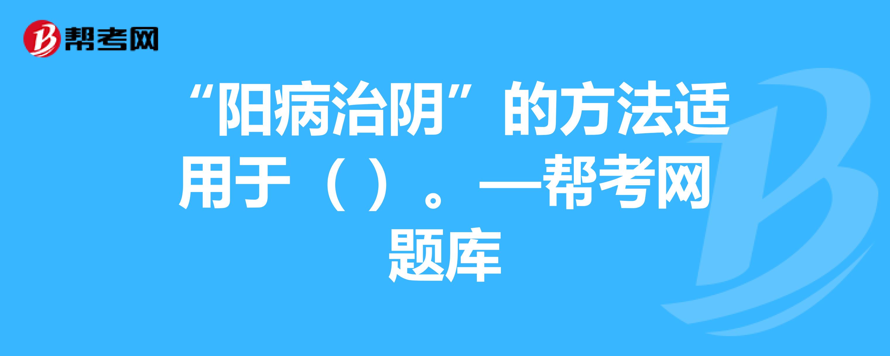 “阳病治阴”的方法适用于什么。求助大侠