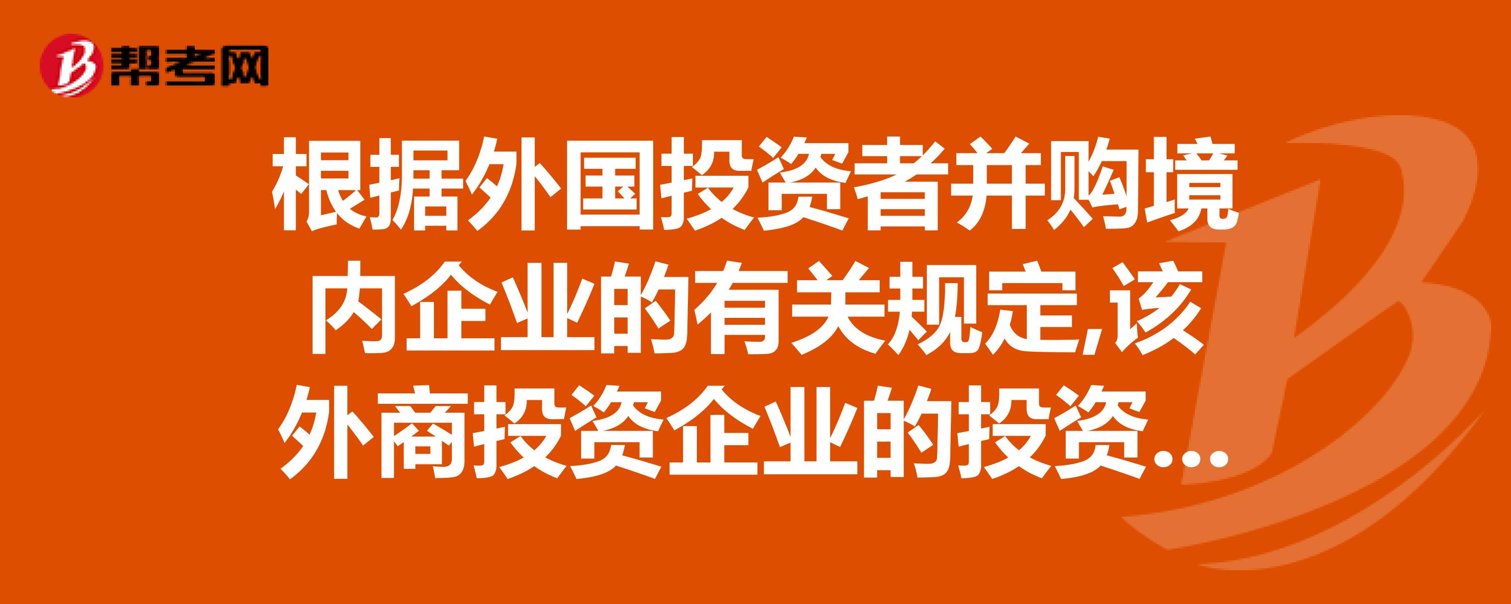 根据外国投资者并购境内企业的有关规定,该外商投资企业的投资总额的上限是()。在线等
