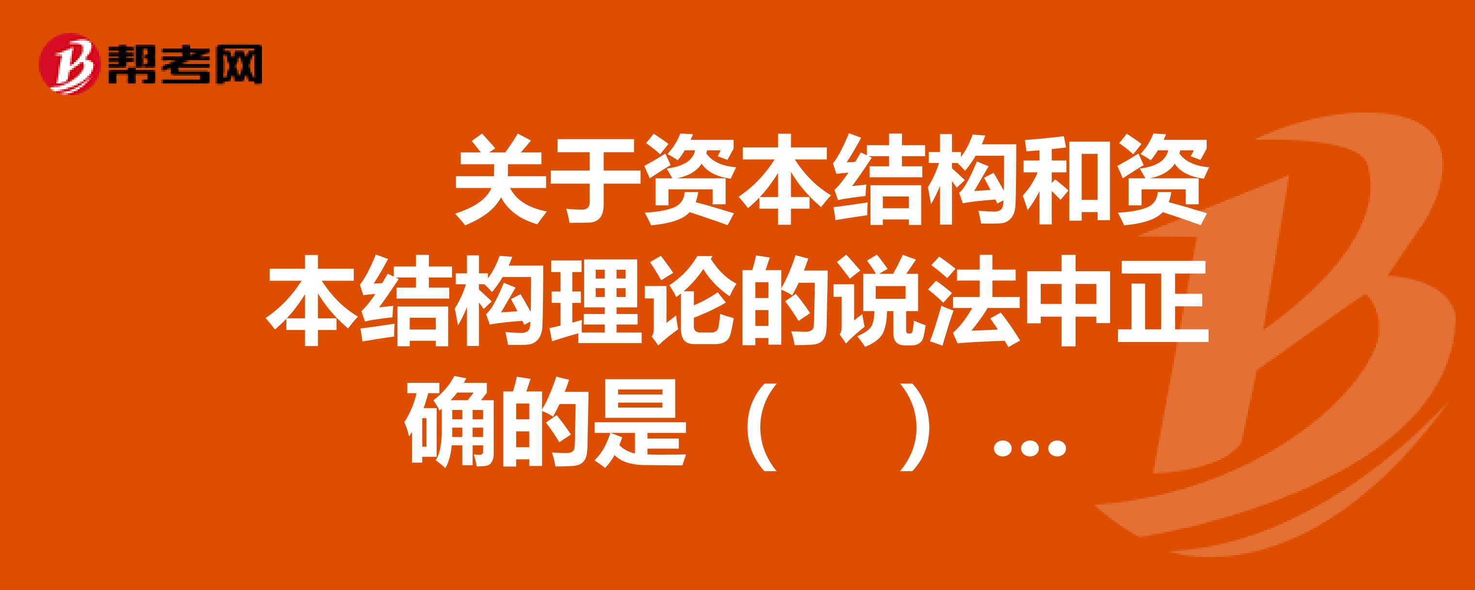什么是资本结构?:资本结构:是指企业各种资本的价值构成及其比例关系,是企业一定时期筹资组合的结果。