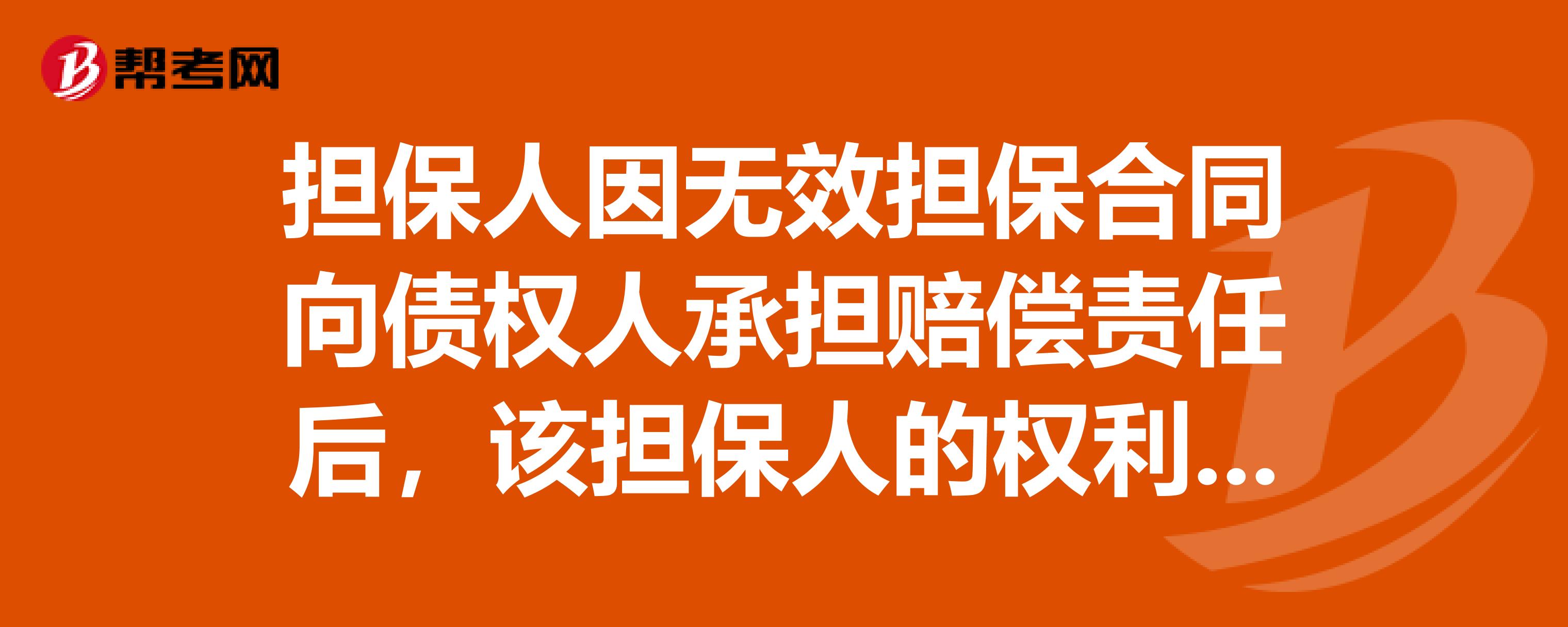 担保人因无效担保合同向债权人承担赔偿责任后,该担保人的权利有什么?在线等