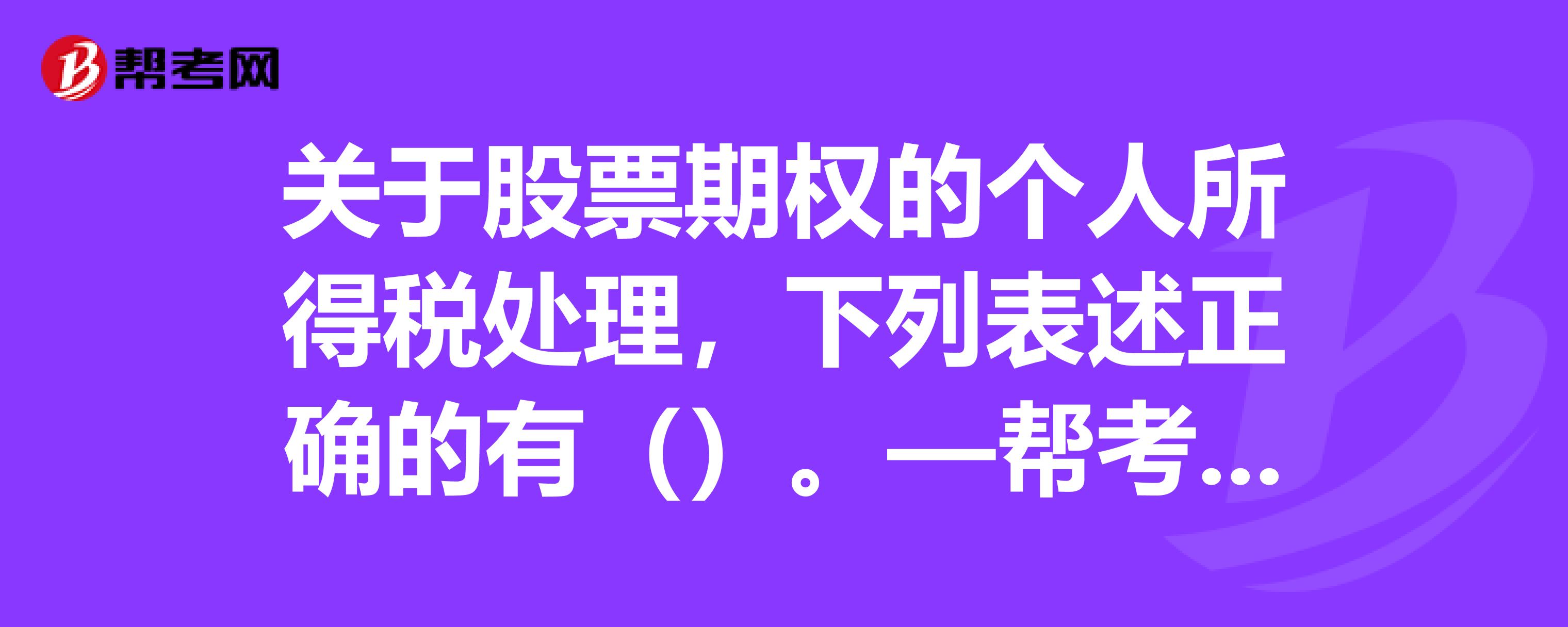 A、员工接受股票期权时,除另有规定外,一般不作为应税所得征收个人所得税