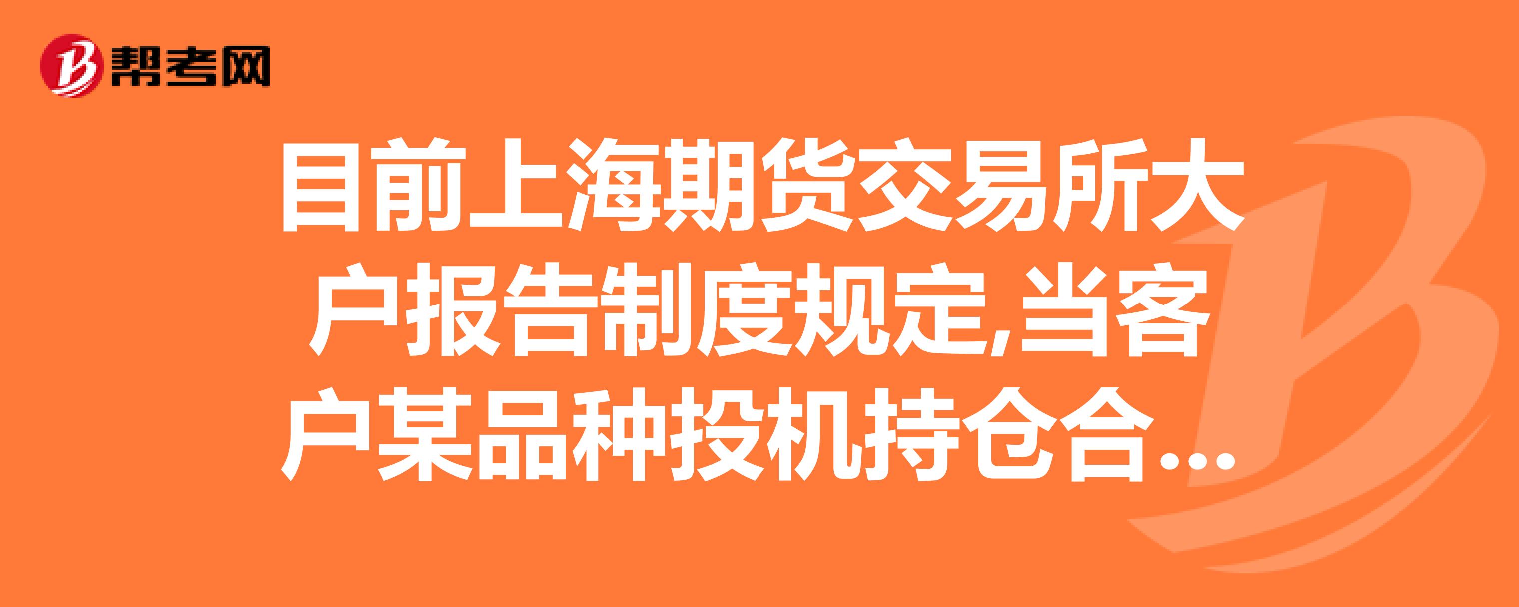 目前上海期货交易所大户报告制度规定,当客户某品种投机持仓合约的数量达到交易所规定的投机头寸持有限量什么以上(含本数)时,应向交易所报告。求助大侠