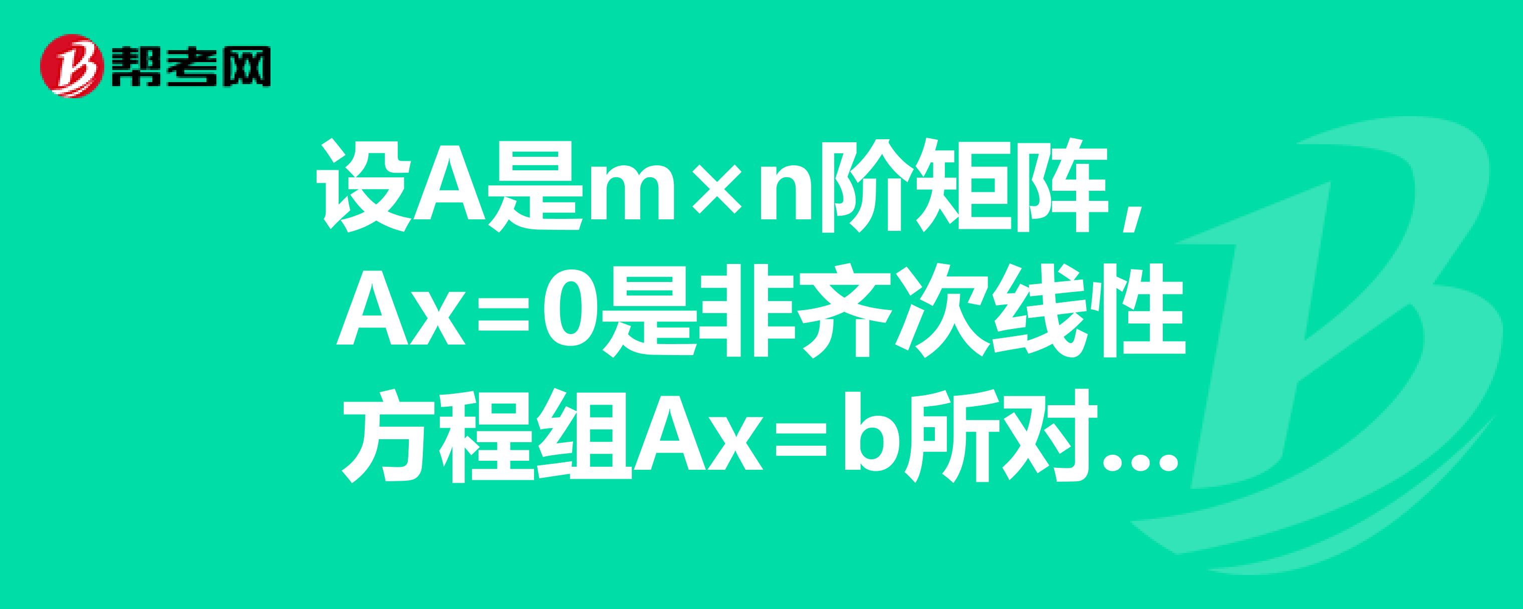 D、若Ax=b有无穷多个解,则Ax=0有非零解