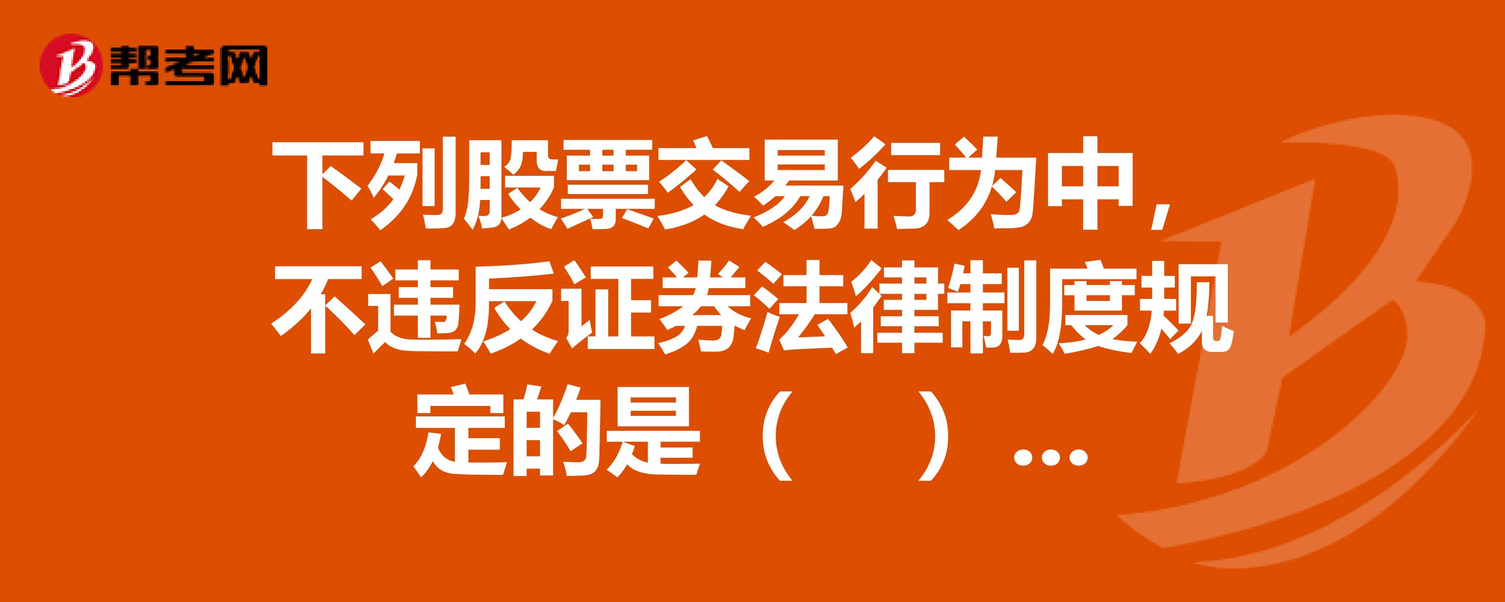 下列股票交易行为中,不违反证券法律制度规定的是()。