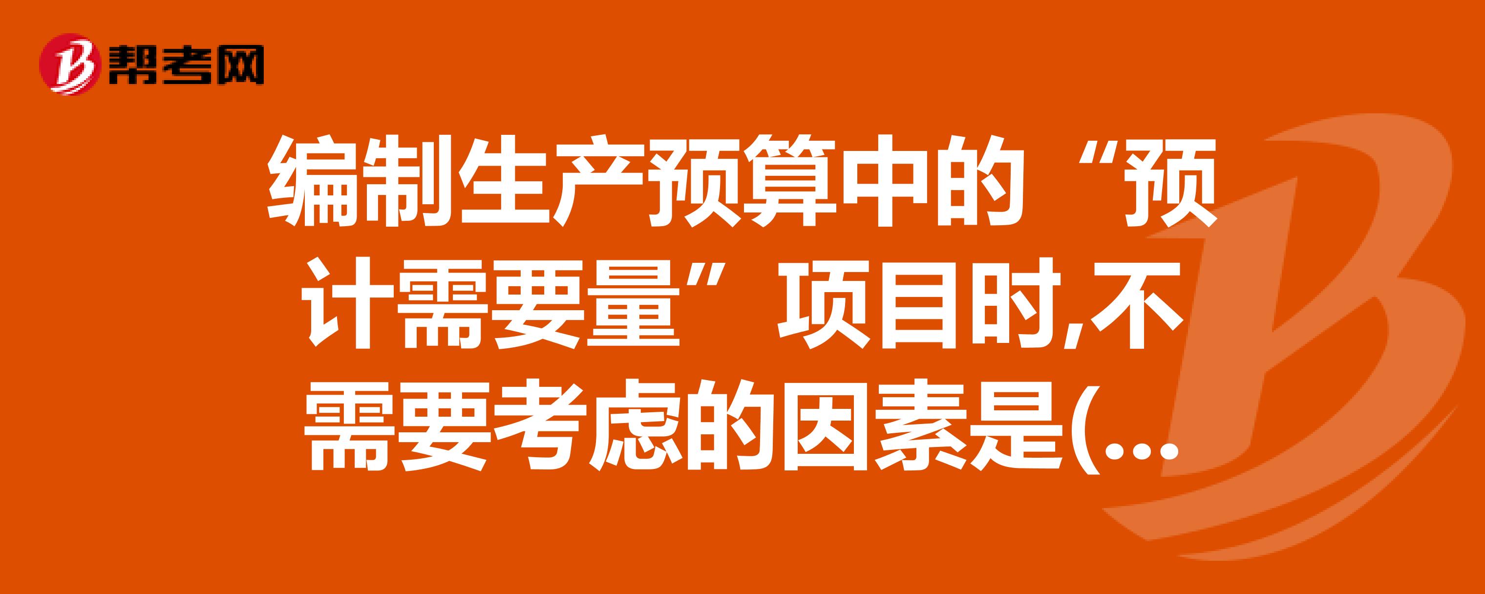 编制生产预算中的“预计需要量”项目时,不需要考虑的因素是()。求助
