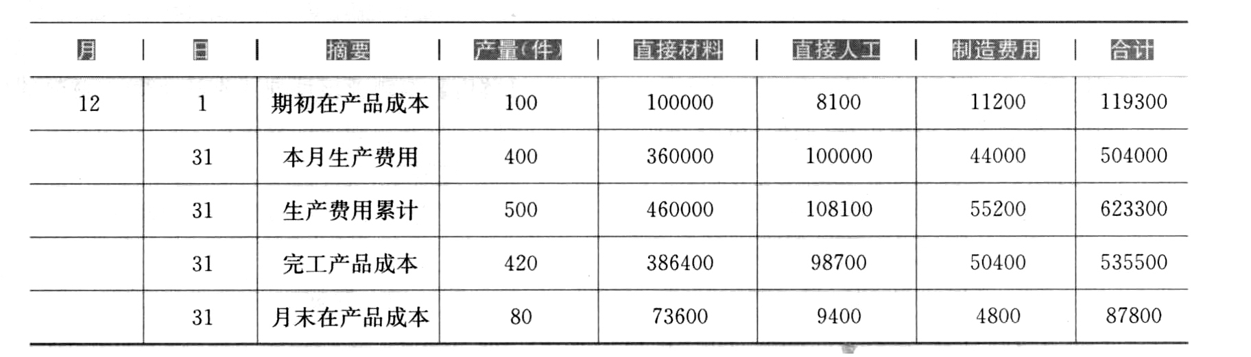- 8 【不定项】月末在产品成本为()元。