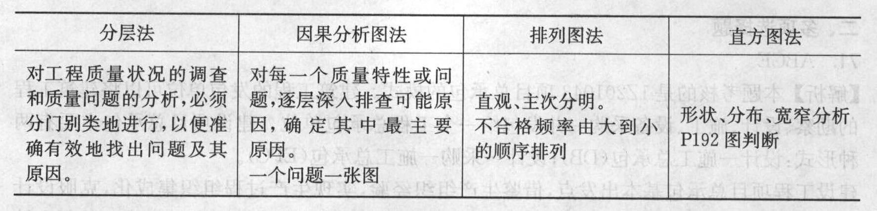 本题考核的是1Z204060数理统计法在施工质量管理中的应用。工程质量统计方法: