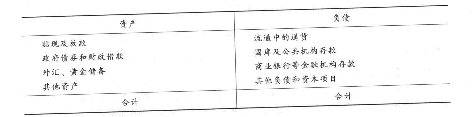 中央银行的资产负债表如下表所示。
