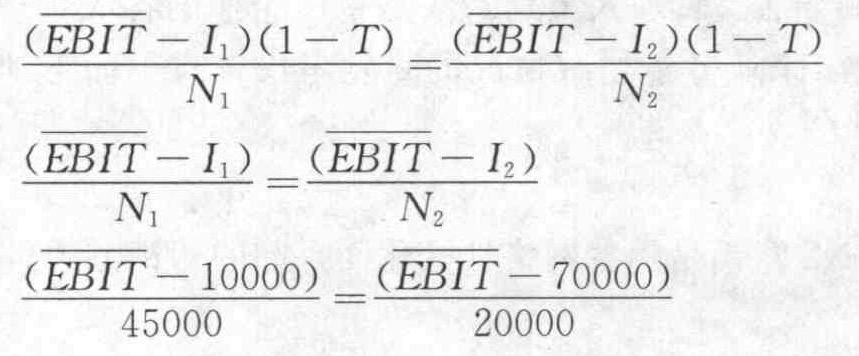 本题考查资本结构决策的定量方法。根据题意两种增资方式下都没有优先股年股利,所以我们就不用考虑,把已知的数字代人公式,即可求得每股利润无差别点。