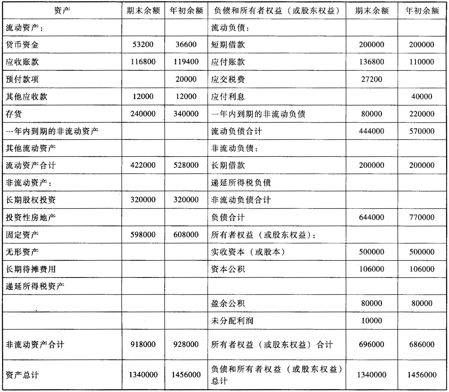 资产负债表(简表)