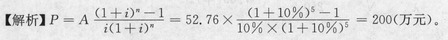 - 单选题某公司投资一个项目,预计该项目每年平均净收益52.76万元,在5年内全部收回投资,若年利率为10%,则现在要投资( )万元。