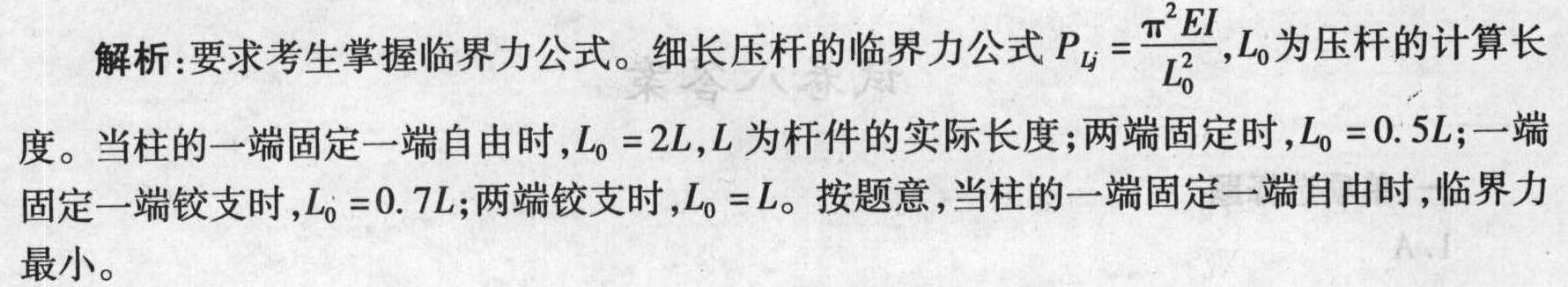 - 8 【单选题】同一长度的压杆,截面面积及材质均相同,仅两端支承条件不同,则压杆临界力最小的情况是()。