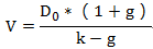 其中v表示内在价值,D0表示股息,k表示必要收益率,g1表示股息增长率。该股票投资内在价值为: