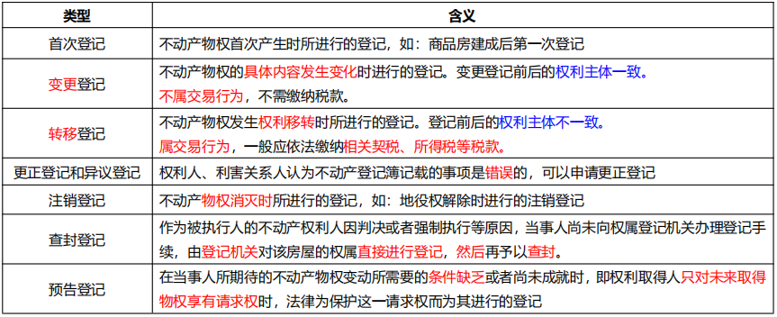 不动产登记的类型: