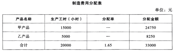 制造费用分配率=33000/(15000+5000)=1.65(元/小时)