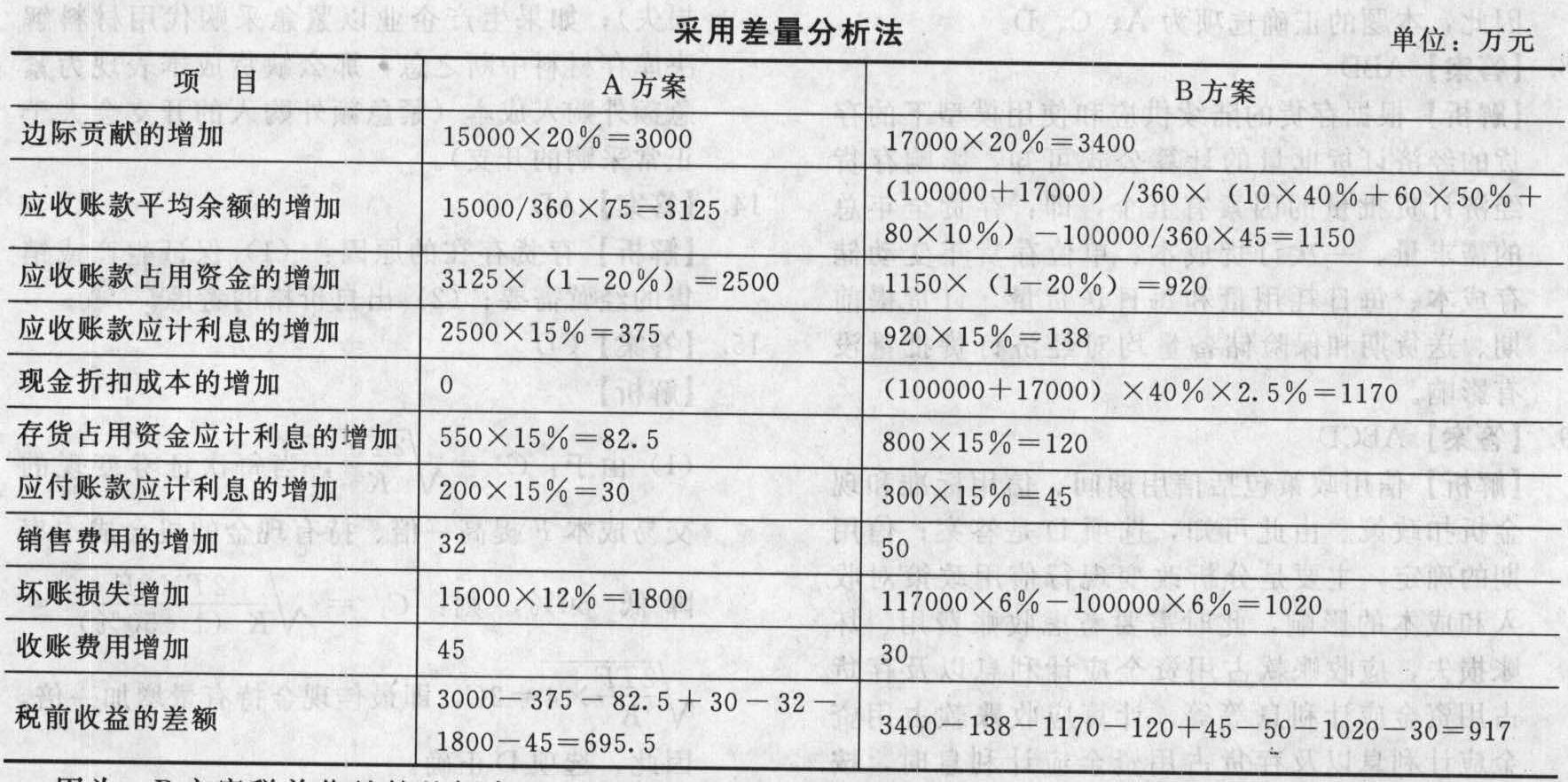 假设泰华公司要改变信用政策,提出A、B两个方案,资料如下: