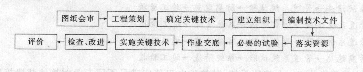 7.该工程施工项目经理部制订的关键技术的管理工作程序不妥。正确的工作程序是: