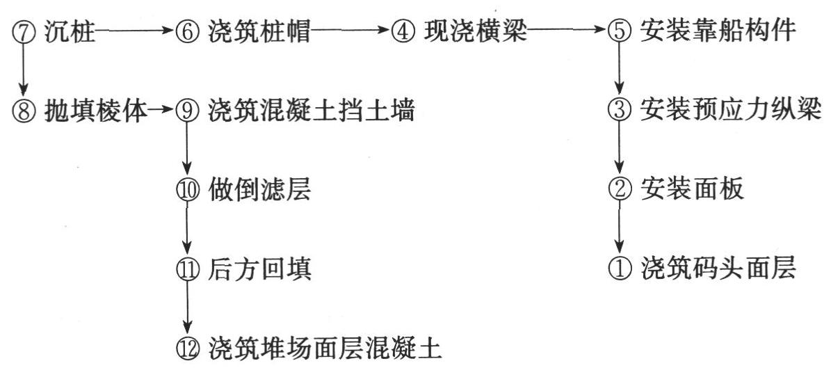 指出码头各构件名称及相应施工工序的名称。