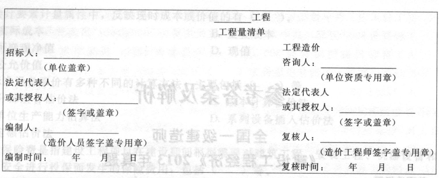 工程量清单计价表格的封面如下页图所示。